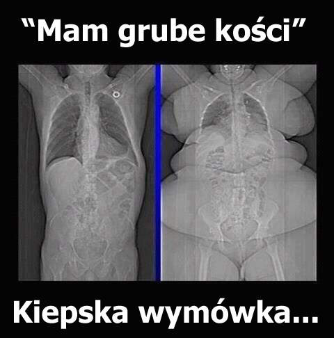 Niestety nie jest to prawda. Różnice w grubości (a więc i ciężarze kości) występują i nie jest to wcale taka mała różnica. Wystarczy sobie chociażby porównać obwody nadgarstka u osób o różnej budowie ciała a podobnym wzroście. Rożnica może wynosić nawet kilka centymetrów, a na nadgarstku tłuszcz się nie odkłada – to jest jedynie różnica w grubości kości. A jeżeli sam nadgarstek może się tak różnić grubością, to można sobie wyobrazić jak duże różnice wielkości i grubości kości będą jeżeli chodzi o kości udowe, miednicę, kolana czy nawet żebra. Oczywiście różnica ta nie będzie wynosić 10 kg, ale już 2 czy 4 kg w zupełności może..