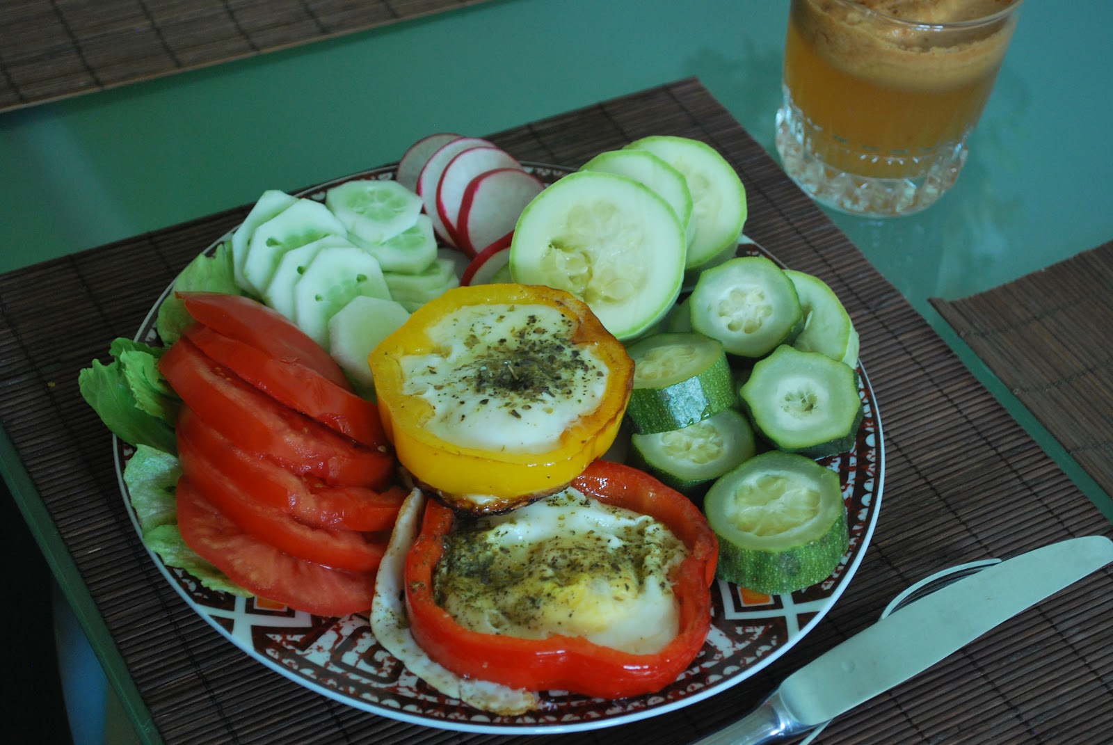 A tutaj jeszcze wersja sadzonych jajek z parowaną cukinią, kabaczkiem, ogórkiem, pomidorkiem i rzodkiewką. Im bardziej kolorowo tym lepiej!