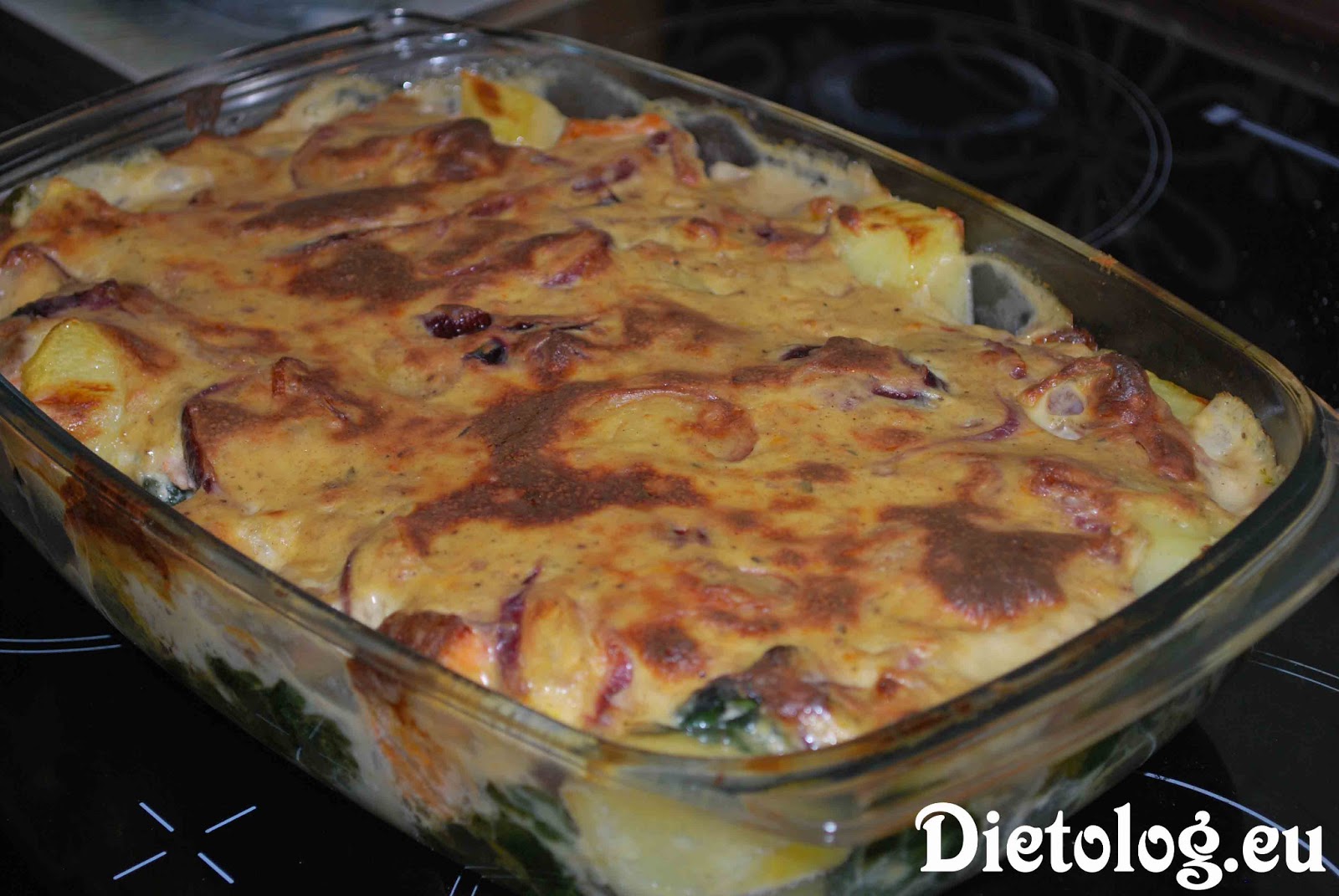 ZAPIEKANKA z ŁOSOSIA, ZIEMNIAKÓW i SZPINAKU pod śmietanowo-serową pierzynką