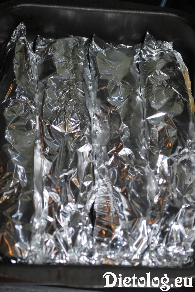 Śledzie myjemy pod bieżącą wodą, osuszamy. Przyprawiamy solą i pieprzem do smaku zarówno wewnątrz, jak i na skórze (której się nie je, ale przez skórę przejdzie smaczek). Zawijamy w folię aluminiową każda tuszkę oddzielnie. Układamy nasze śledziowe „mumie” w naczyniu żaroodpornym, brytfance lub tacce. Pieczemy około 30 minut w temperaturze 180stopni.