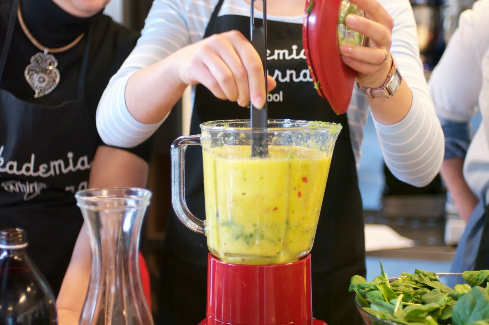 Warsztaty trwały kilka godzin i minęły w fantastycznej atmosferze. Kasia zaproponowała, by do diety włączyć czystek, ostropest i młody jęczmień. Dodaliśmy te składniki do przepysznych warzywno-owocowych koktajli.