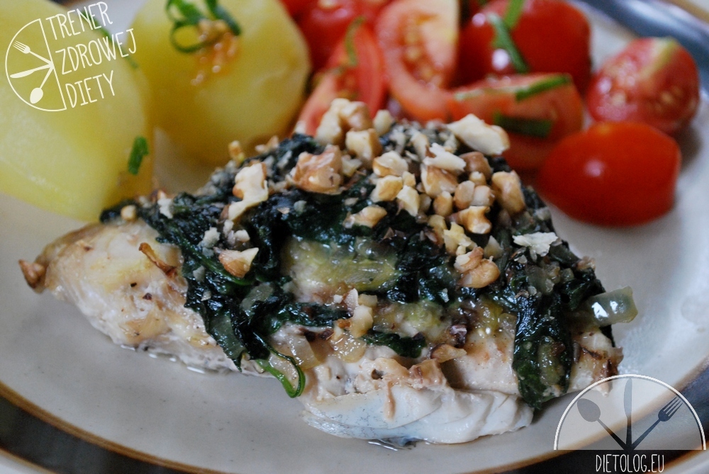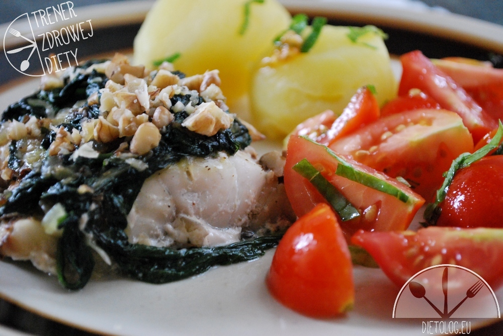 POLĘDWICA z DORSZA ze SZPINAKIEM i ORZECHAMI