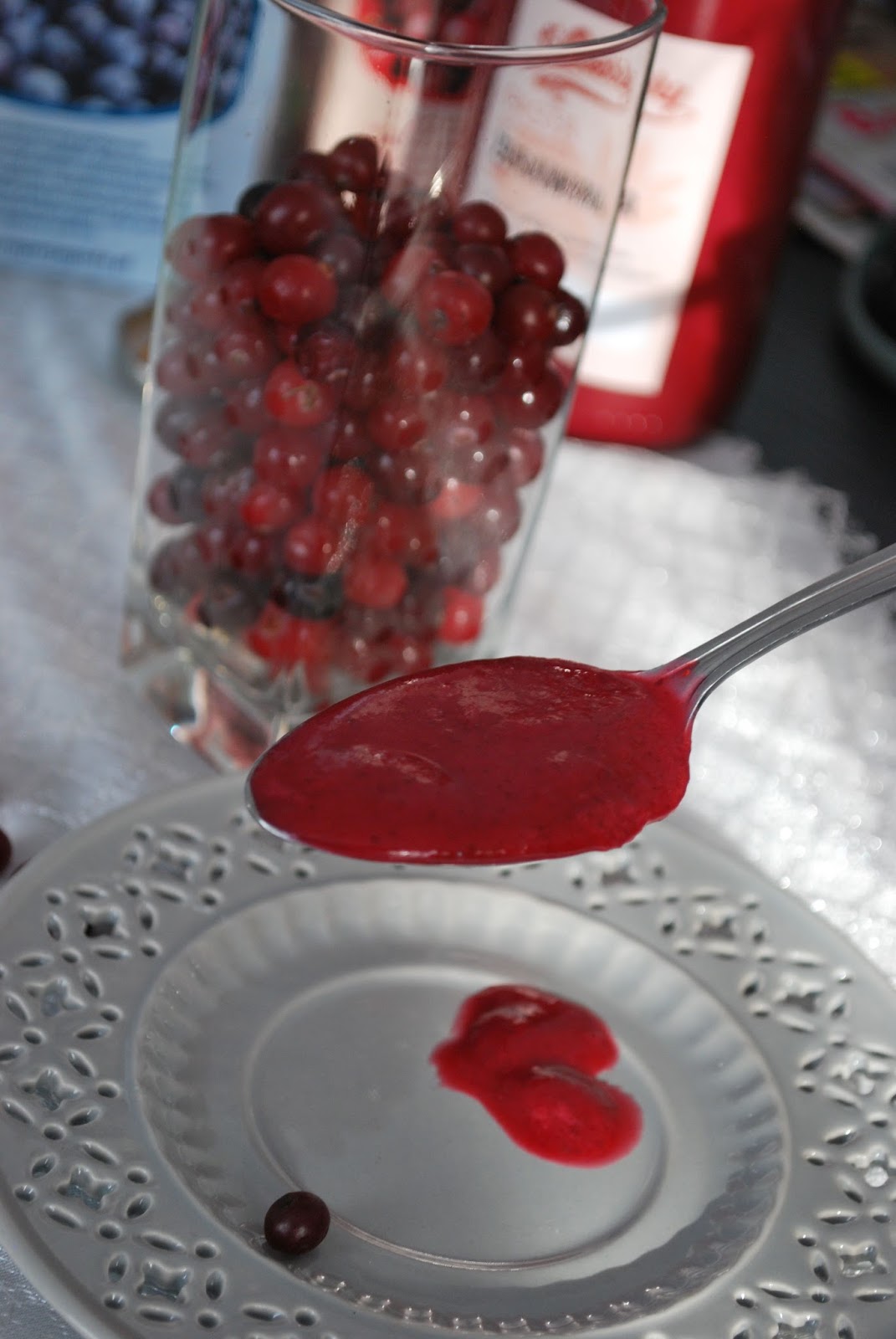 szklankę wypełnioną w ¾ żurawiną odpowiadając na pytanie ile owoców żurawiny